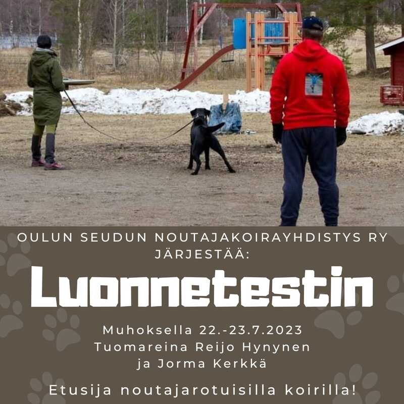 Oulun seudun noutajakoirayhdistys ry järjestää luonnetestin (LTE) 22.-23.7.2023 Muhoksella Etusija ja edullisempi osallistumismaksu (60e) noutajille! Ilmoittautuminen alkaa 22.5. noutajille ja muille 5.6. (70e). Viime vuonna suurin osa osallistujista oli noutajia, saisimmeko tänä vuonna koko testin täyteen noutajista? Pistähän jo kalenterin kulmaan merkki! Lisätietoja ja ilmoittautuminen Virkussa: https://www.virkku.net/index.cfm?template=search.cfm&type=testit Miksi testaisin koirani? |