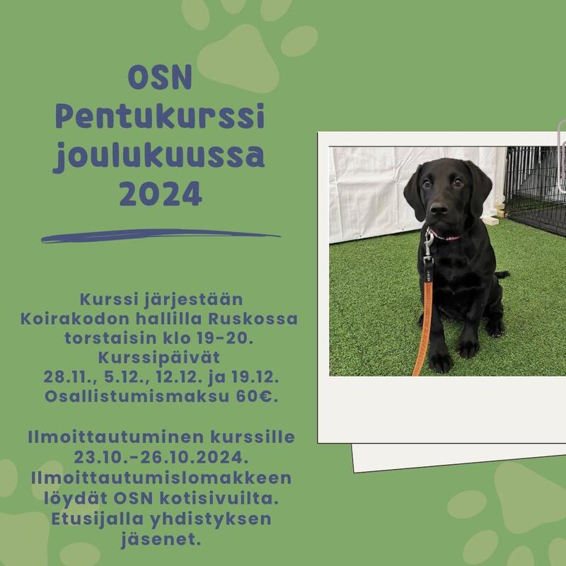OSN ry järjestää pentukurssin joulukuussa torstaisin klo 19-20. Kurssipäivät: 28.11., 5.12., 12.12. ja 19.12.